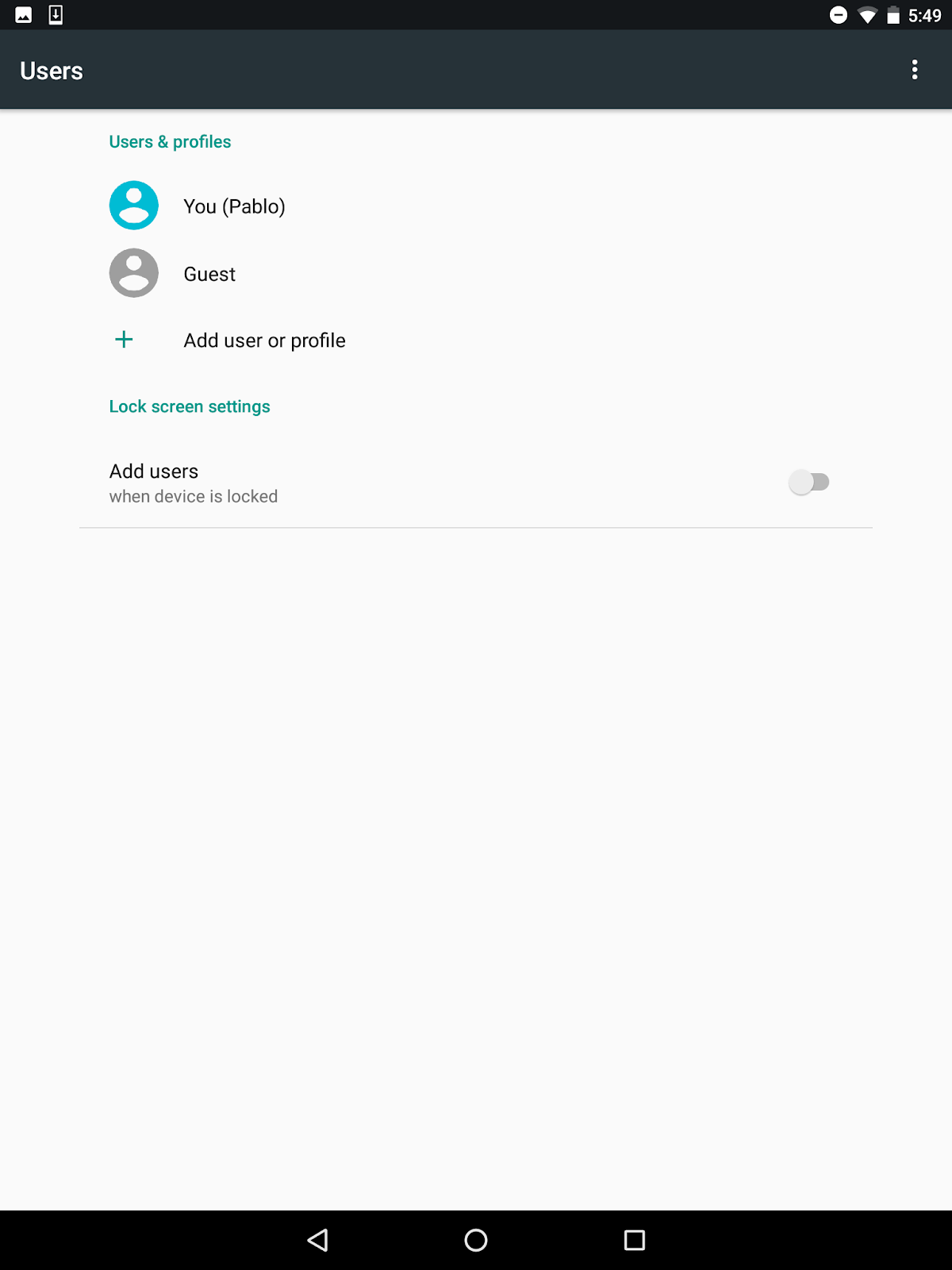 En versiones anteriores de Android, es posible que tengas que desactivar manualmente la cuenta de invitado y crear un nuevo perfil de usuario para tu hijo sin privilegios de administrador. Siga estos pasos: