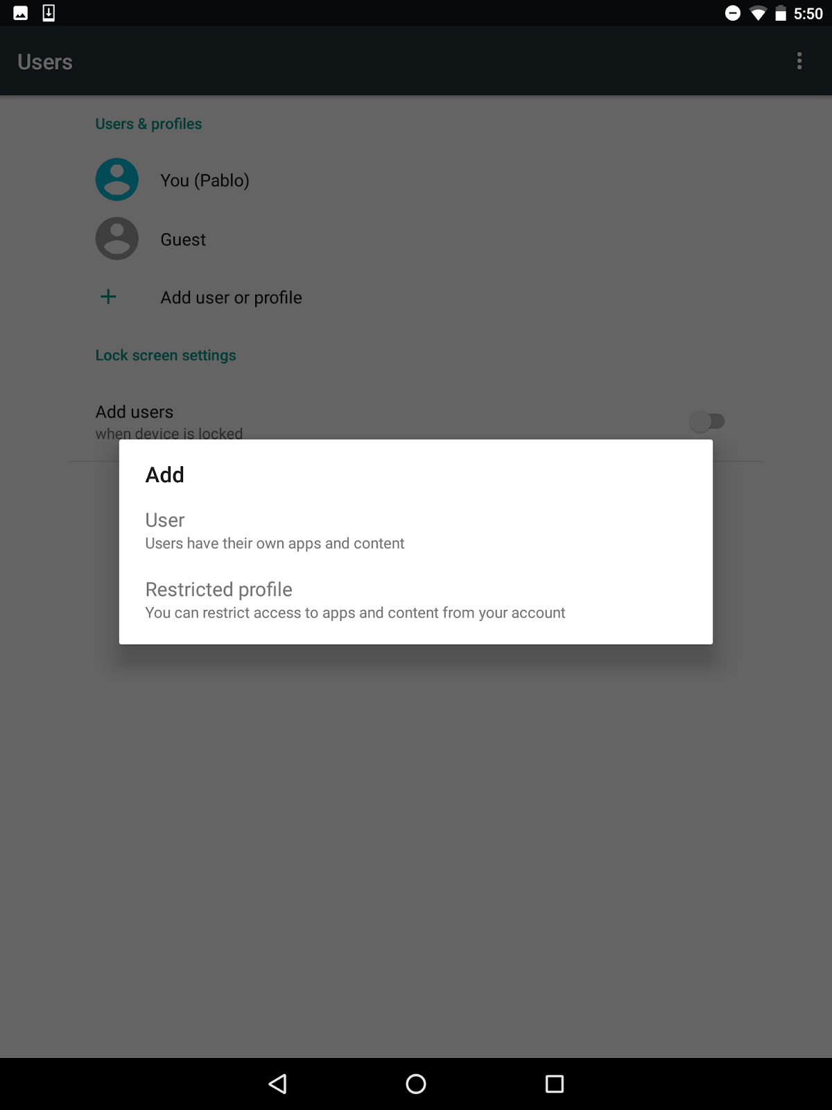 Op oudere versies van Android moet je mogelijk handmatig het gastaccount uitschakelen en een nieuw gebruikersprofiel voor je kind aanmaken zonder beheerdersrechten. Volg deze stappen:
