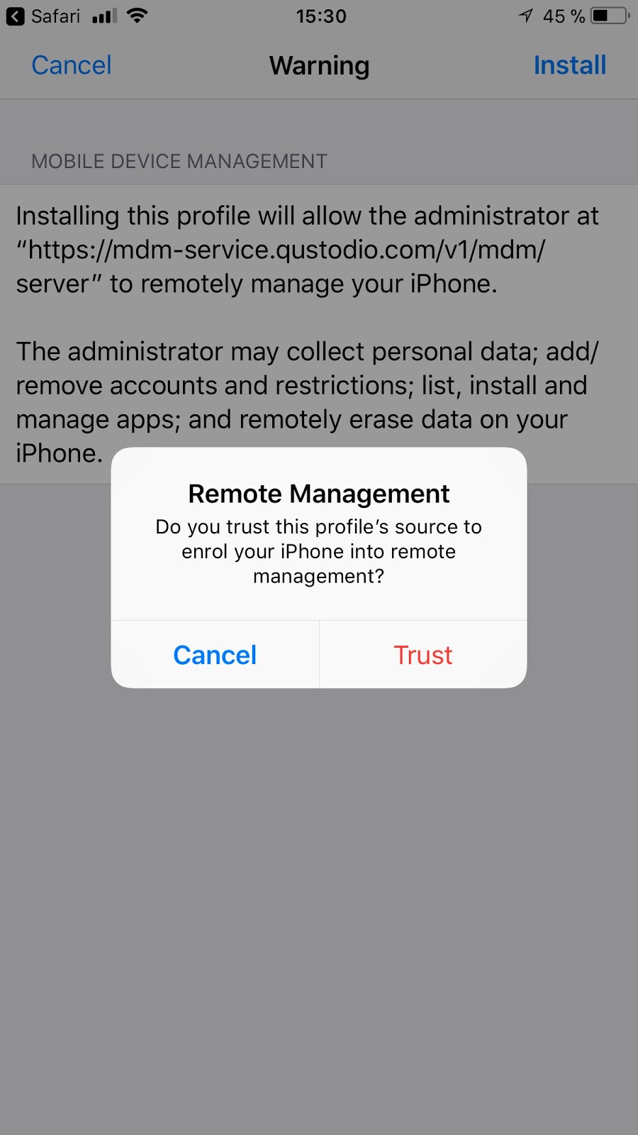 Qustodio vereist dat het iOS MDM-profiel is geïnstalleerd en ingeschakeld op het iOS-apparaat dat je wilt beschermen. Alleen dan kan Qustodio het apparaat monitoren en bescherming en tijdslimieten afdwingen.